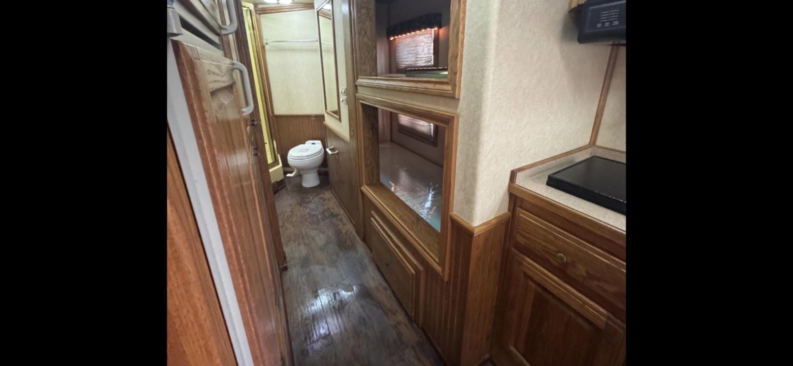 This is a really nice 3 horse slant trailer with 14' LQ, 29' overall and 7' wide Queen size front bed, couch jack knife into bed, rear double bunks. Full bathroom with shower, toilet, and sink.A/C, hot water, and furnace.