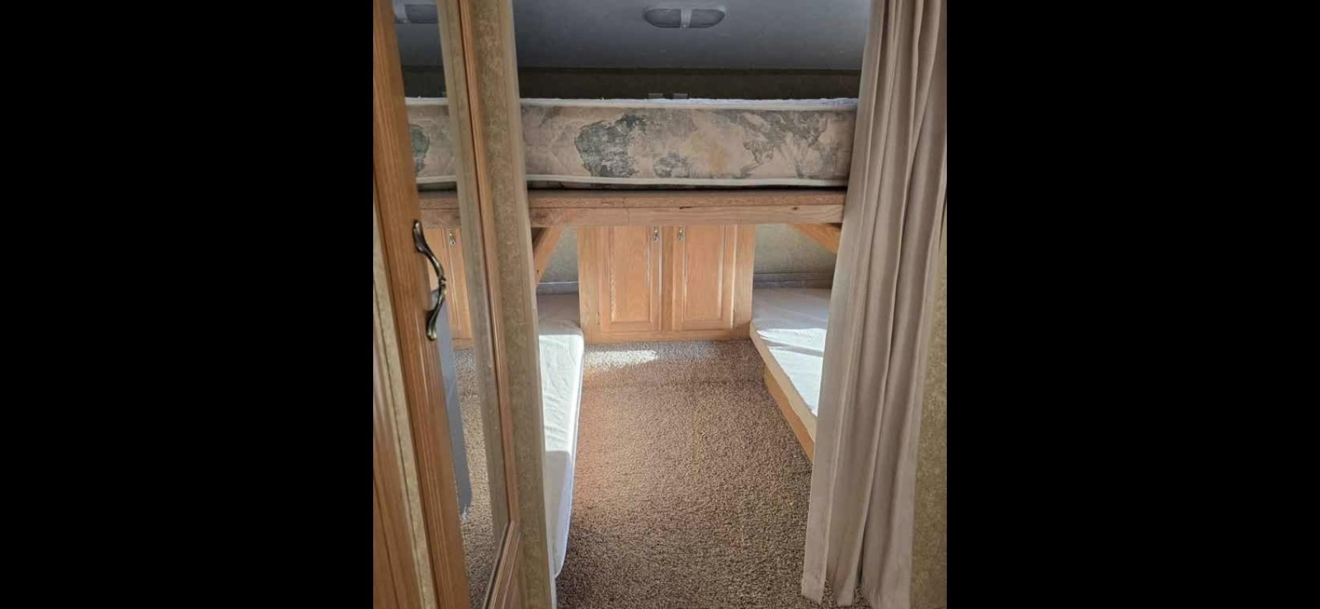 Very nice fifth wheel with two slides and front triple bunks. Rear suite with queen bed. Couch makes into bed. Stand alone kitchen table and chairs. Could sleep 7. Auto awnings and auto front jacks, solid corrian countertops, oak cabinets, full bath, shower, toilet, a/ c, hot water, furnace. Model 32RS. Rear tow hitch with wiring. WE CERTIFY OUR USED TRAILERS!! John at 406 208 0659